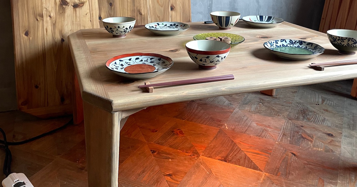お写真で見るよりも、実物の方がずっとずっと素敵でした。早速、使っていたこたつを端に寄せ届いたこたつを置きました!